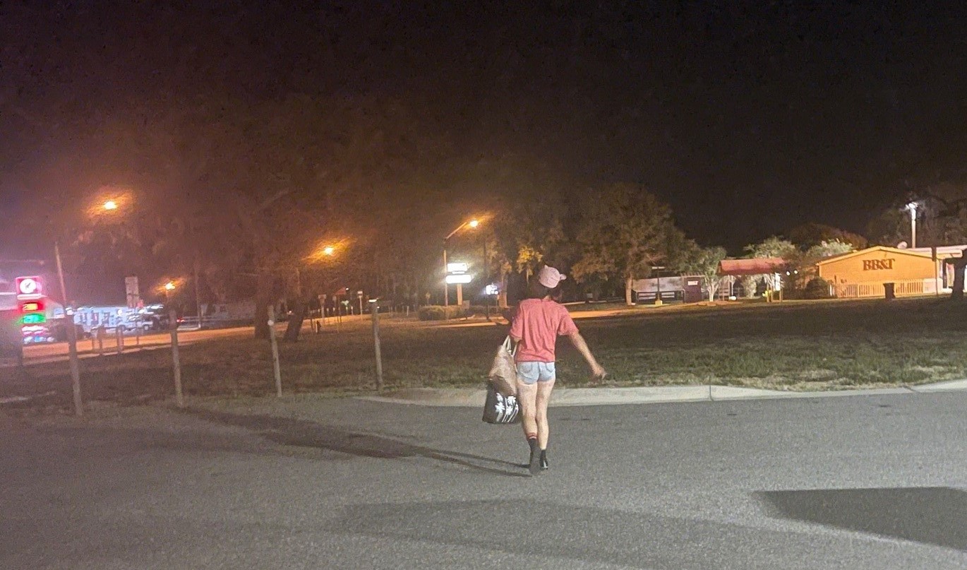 The woman in these photos was observed burglarizing a vehicle in the Hungry Howie's parking lot (108 Commonwealth Ave. N., Polk City). When the vehicle's owner confronted her, she fled. As you can see in one of the photos, she has a large tattoo on her left thigh.