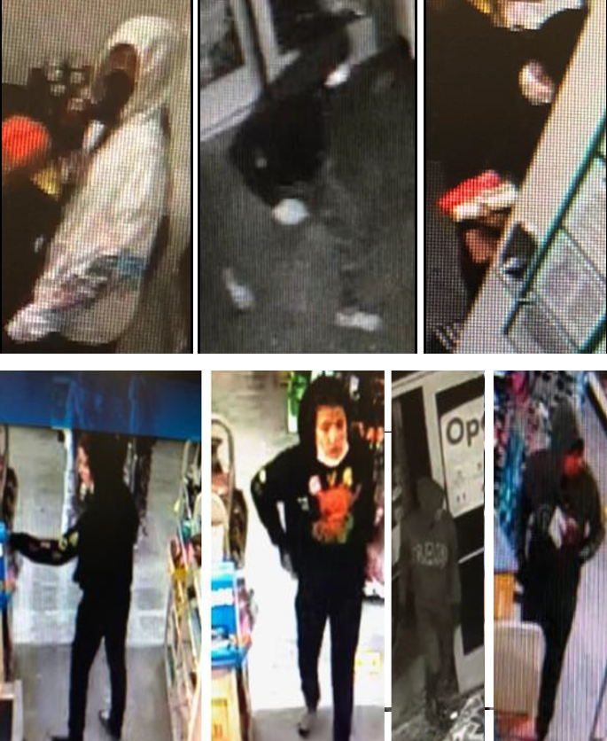 One suspect is male, possibly white or Hispanic. The other suspect is possibly female, and possibly white or Hispanic.